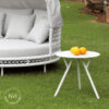 La mesita auxiliar es de aluminio resistente a las condiciones de la intemperie. Tapa en aluminio.