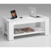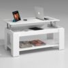 La mesa de centro Elevable Ramiro está diseñada y fabricada como mesita auxiliar para delante del sofá. Su tapa se eleva para máxima comodidad, dejando libre un práctico hueco donde guardar distintos elementos. Además cuenta con una cómoda bandeja inferior que sirve de revistero. Esta mesita de centro es perfecta para casas de estilo moderno y fresco. Está disponible en color Blanco Artik.