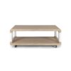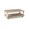 La mesa de centro Polinesia es de madera DM texturada, en color Cambrian. Detalles laterales Blanco Laca Piano. Ruedas con freno. Se presenta en KIT de fácil montaje.