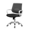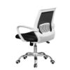 Con estructura metálica crómada y PVC Blanco, y una base giratoria con ruedas aptas para cualquier suelo. Sistema de elevación del asiento a gas. Tapizado tejido Mesh 3D, sistema de balanceo, soporte lumbar ergonómico, brazos fijos y ruedas apropiadas para cualquier tipo de suelo.